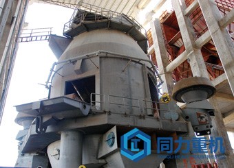 煤立磨機由電動機驅動,通過行星減速機帶動磨煤機磨盤轉動,磨盤上的2-4個磨輥在磨盤的帶動下轉動,經落煤管進來的原煤分布在磨盤上,由于液壓加載力的作用,磨輥與磨盤之間產生擠壓使大顆粒原煤被壓碎。靠磨輥與磨盤的相對運動產生的滑動摩擦力實現小顆粒煤被碾碎;原煤在磨內被碾磨的同時,被通入立磨機的熱風(一般在300℃以下)烘干掉原煤的水分,達到成品煤粉規定的要求;碾磨后的煤粉,通過一次風輸送進入分離器進行分離。分離出合格的煤粉被輸送至煤粉倉,不合格的粗煤粉返回到磨內重新進行研磨。